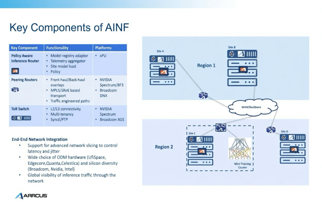 The AINF architecture aligns directly with the distributed, policy-aware approach that Arrcus is promoting for AI inference workloads.
